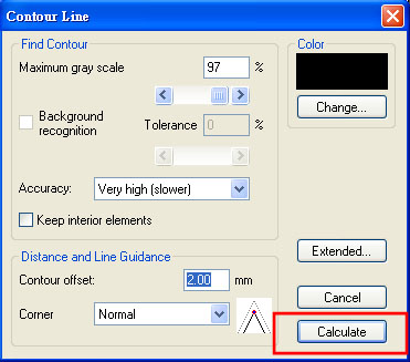 Complete contour line settings (including contour offset value) and press Calculate to confirm.