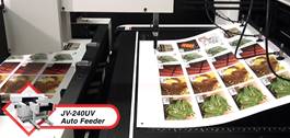 The feeder for JV-240UV is a feeding and delivering system that can automatically load the media sheet to work area and collect it after the varnishing is completed. No need to assign an operator to take care of sheet loading tasks, just put a stack of sheet to the feeder, and the feeder will do the rest.